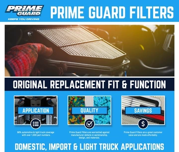 Prime Guard Air Filters are designed to deliver optimal filtering efficiency and maximum protection for your engine. Prime Guard Air filters have been tested for quality fit, and function and are a great customer value. Prime Guard Air Filters are warrantied against manufacturer defects in workmanship, design, and materials.